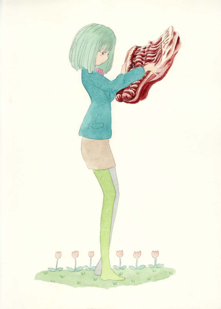 "The Garden of miss Potemkin" watercolor "angel's milk" acrylic "crystal nights remains " acrylic "small voices screaming" acrylic "niece of the crimson king" acrylic (C)YUNICO UCHIYAMA/VESICAPISIS, 内山ユニコ/ベシカピシス, ALL RIGHTS RESERVED.